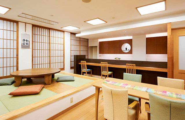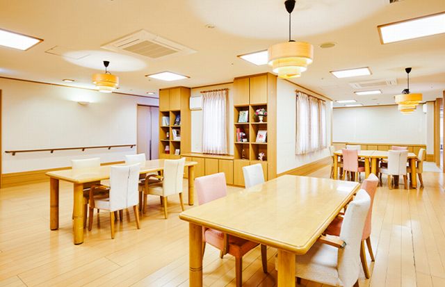 | 共有設備 | フロント、応接室、ダイニングルーム、機能訓練室(メインホール)、喫茶室、ゲストルーム(宿泊時有料)、プライベートダイニング、浴室(個浴・特殊浴槽)、共用トイレ、厨房、健康管理室、駐車場(有料)、駐輪場、理美容室 等 |