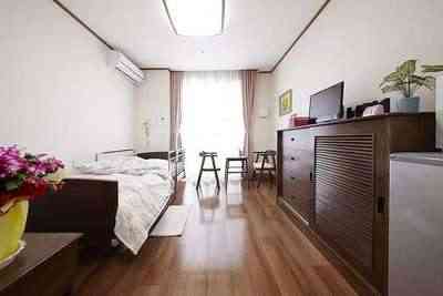 居室設備 トイレ(車椅子対応、ウォシュレット付)、エアコン、洗面台、緊急コール、電動ベット、加湿器、除菌・消臭装置、カーテン、冷蔵庫、オリジナル家具(チェスト、テーブル、イス、ベットサイドテーブル)、テレビ