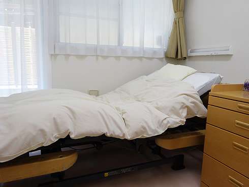 | 居室設備 | ナースコール、エアコン、ウォームレットトイレ、洗面台、介護用電動ベット、ベットランプ、床頭台、居室照明、カーテン |