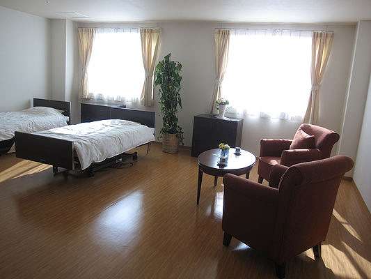 | 居室設備 | 電動介護ベッド、チェスト、ナースコール、スプリンクラー、エアコン、シャワートイレ、洗面台、カーテン、リネン、寝具 |