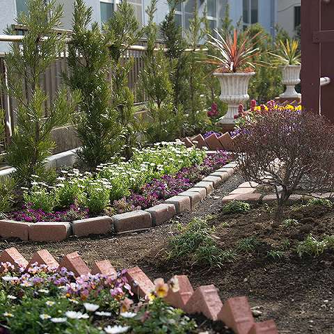 ホームに入ると、整えられた庭があり、季節折々の花々で季節を感じる事ができ、シニア様の憩いの場となっています。