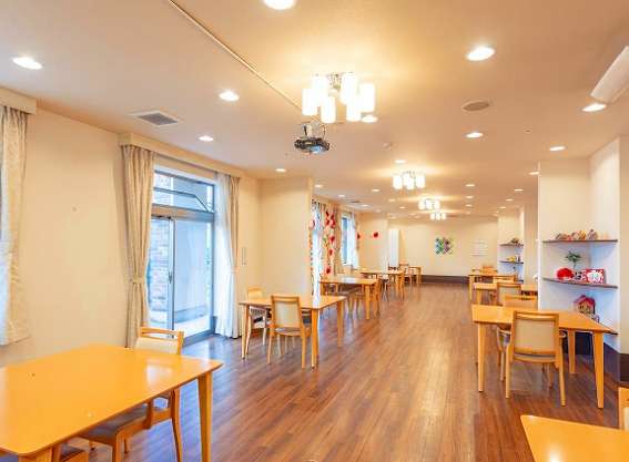 | 共有設備 | 大食堂、エレベーター、駐車場、機能回復訓練室、厨房、健康管理室、エントランス、ラウンジ、足湯、遊歩道、洗濯室、浴室、談話コーナー、屋上ラウンジ、スタッフステーション |