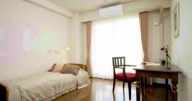 | 居室設備 | フローリング(クッションラバー付)、車いす対応洗面台、電気式温水器、トイレ(温水洗浄・暖房・脱臭便座機能付)、洗面・トイレ照明(人感センサー付)、手すり(トイレ)、クローゼット、ウォークインクローゼット(二人部屋)、床暖房(電気式)、冷暖房エアコン、電動式介護ベット、寝具、ケアナースコール、スプリンクラー、非常放送設備、防炎カーテン、カーテンレール、居室照明(リモコン付) |