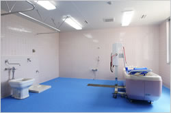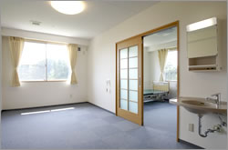 | 共有設備 | 健康管理室、機能訓練室、食堂(兼機能訓練室)、談話室、トイレ、車椅子用トイレ、一般浴室、特別浴室、浴室、車椅子用トイレ、汚物処理室、避難用階段、洗濯室、介護・看護職員室、介護・看護職員宿直室、倉庫等・ |