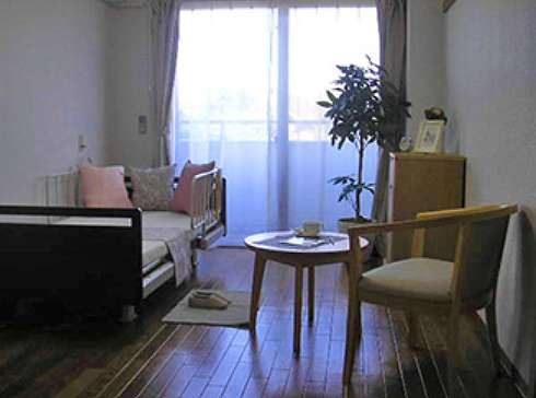 | 居室設備 | フローリング調CF床、エアコン、安心見守りカメラ、車イス対応洗面化粧台、ナースコール、出入口引戸、クリニック直通TV電話、スプリンクラー、収納、介護専用電動ベッド、防炎カーテン、 |