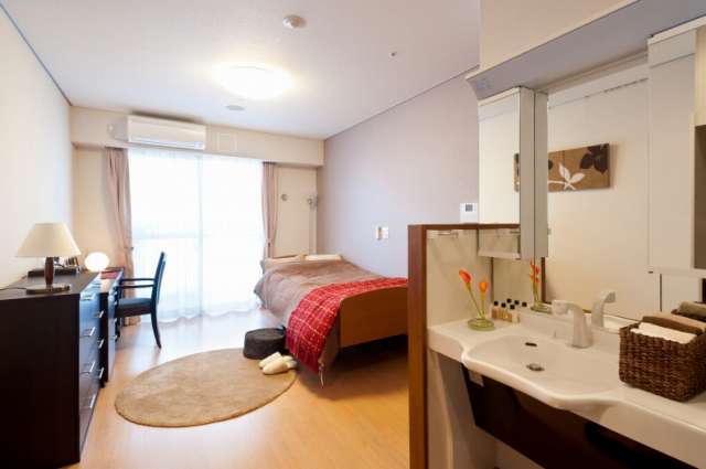 | 居室設備 | インターフォン、エアコン、スプリンクラー、テレビ回線、フラットフロア、フローリング、ミニキッチン(9Fのみ)、緊急通報装置、車椅子対応トイレ、車椅子対応洗面化粧台、収納、電動介護ベッド、電話回線、防火カーテン |