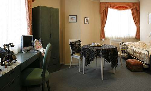 | 居室設備 | ミニキッチン、洗面化粧台、シャワールーム、トイレ(ウォシュレット)、照明器具、エアコン、サイドボード、チェスト、クローゼット、ミラー、チェアー、ナースコール |