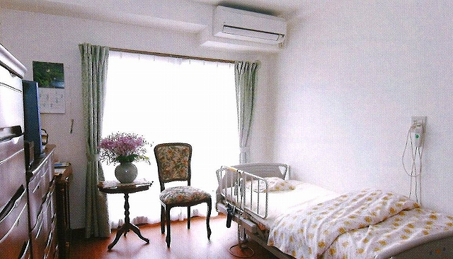 | 居室設備 | エアコン、緊急時コールボタン、介護用電動ベット、トイレ、室内照明、洗面台(鏡付)、クローゼット |