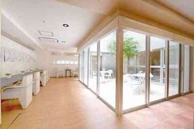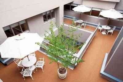 顔なじみ同士がのんびりくつろぎながら談笑できる空間です。館内は吹き抜けになっており、1階・2階は中庭となっています。中庭からも暖かい陽が差し込み、1年中暖かく明るい空間となっています。中庭には様々な植物がおいてあり、季節を感じて頂けるように定期的な植え替えをおこなっております。1階の中庭はカフェと直結しているため、天気の良い日には中庭に出て、近くで眺めたり陽の光や風を感じながらゆったり過ごすこともできます。