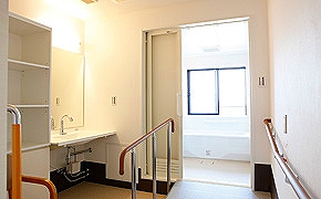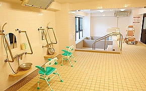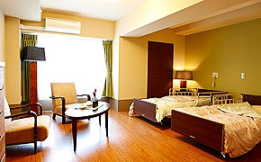 | 居室設備 | ■A・Bタイプ・トイレ・洗面化粧台・介護ベッド・ナースコール・カーテン・エアコン・照明・電話端子・TV端子・スプリンクラー・■C・Dタイプ・クローゼット・トイレ・洗面化粧台・介護ベッド・ナースコール・カーテン・エアコン・照明・電話端子・TV端子・スプリンクラー |