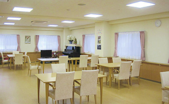 | 共有設備 | エントランス、食堂(1階・2階・3階)、ヘルパーステーション、医務室、事務室、相談室、厨房、浴室(一般浴槽、機械浴槽、特殊浴槽)、共用トイレ、エレベーター2基、火災通報装置、ナースコール(共用浴室、トイレ) 等 |