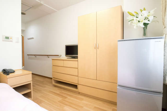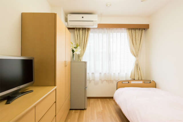 | 居室設備 | ベット、寝具一式、ワードロープ、テーブル、電話機、床暖房、カーテン、エアコン、テレビ、冷蔵庫、椅子、トイレ、洗面所、緊急コール、ペンダントコール、ライティングデスク、ユニットバス(3点式) |