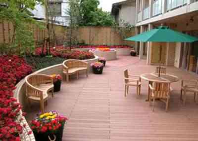 緑溢れる閑静な住宅街に溶け込む瀟洒な佇まい、敷地内に造成された広い庭、季節感あるふれる木々、花々に彩られた生活環境は、これまでのケアホームの概念を覆す雰囲気があると皆様からご好評いただいております。