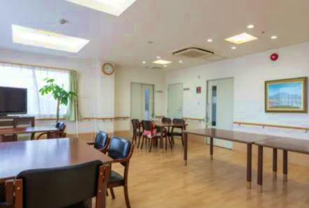 | 共有設備 | エントランスホール、風除室、フロント、ホール、ダイニングルーム、中庭、テラス、駐車場、駐輪場、喫煙室、エレベーター、食堂、個人用浴室、共用トイレ、車椅子用トイレ、洗濯室、洗面室、囲碁・将棋、多目的室、洋室、スタッフルーム、介護浴室、ナースコール、自販機、厨房室、汚物処理室、防災設備、避難設備 |