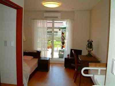 | 居室設備 | 介護用電動ベッド・寝具・照明・冷暖房・チェスト・クローゼット・防火カーテン・ナースコール・コンセント・洗面所・防火設備(スプリンクラー、熱感知器、非常時放送用スピーカー)・トイレ・TV回線 |