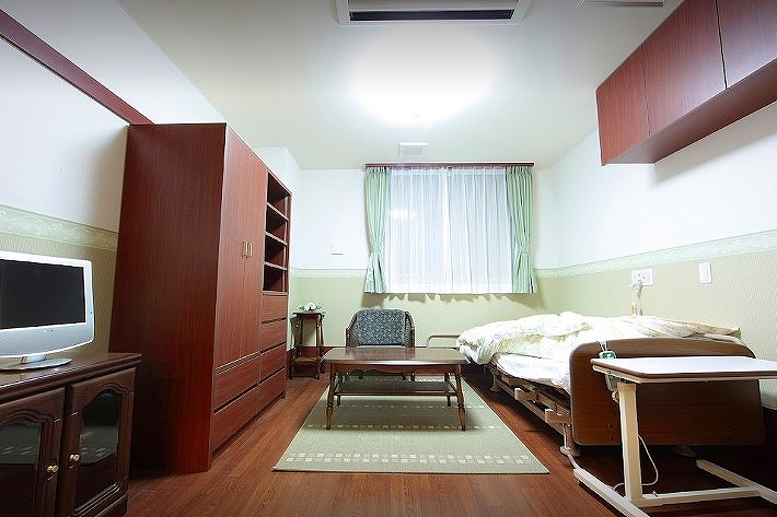 | 居室設備 | 家具(クローゼット)、カーテン、エアコン、介護用電動ベッド(寝具付)、ナースコール、車いす対応洗面台、ウォシュレット付トイレ |