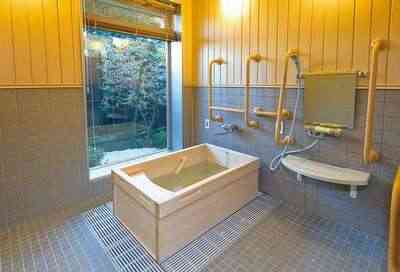 また、庭を眺めながら入ることのできる檜木風呂も自慢の一つです。