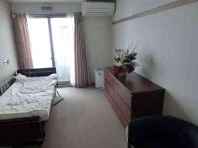 居室:全居室に家具付き、エアコン、冷蔵庫、収納、介護ベッド等も備え付けておりますので、すぐにご入居いただけます。