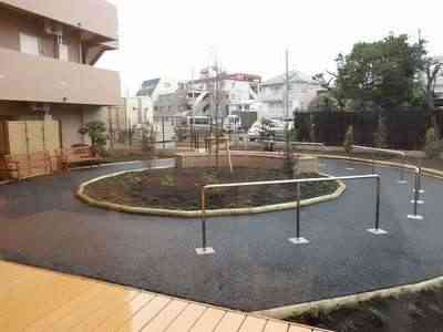 手軽に散歩や日光浴を継続して楽しんでいただけるよう、敷地内に遊歩道を設置いたしました。 その先には菜園があり、季節の色とりどりの野菜や花を育てていただけます。 庭園は1階リビングからウッドデッキテラスを通って行くことができます。