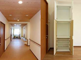 | 居室設備 | トイレ、浴室(一部居室を除く)、洗面台、収納、エアコン、照明、緊急コール(居室、トイレ、浴室に設置)備え付け家具(ベッド、テーブル、椅子、チェスト、ロッカー) |