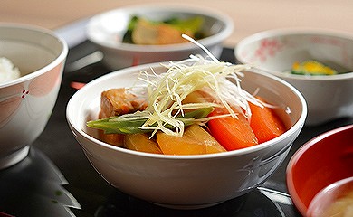 サークル活動ではホールでカラオケ、庭園散歩や花壇の手入れ等をご入居者様とご一緒に行っております。毎日の食事は、選択食を導入し、レストランのようにお好みの食事を選択して召し上がって頂いております。車いすの方にもお気軽に散策を楽しんでいただけるように、ウッドデッキテラスをご用意。テラスから見える庭園は日光浴に最適です。