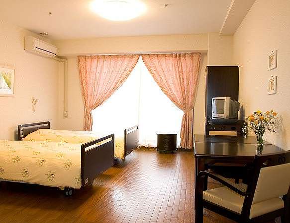 | 居室設備 | 全室冷暖房完備・介護ベッド・チェスト・テーブル・イス・14型テレビ・カーテン・ナースコール等 |