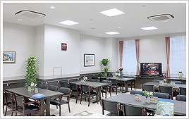 | 共有設備 | エントランスホール、風除室、フロント、ホール、ダイニングルーム、駐車場、駐輪場、応接室、喫煙室、食堂、一般浴室、個人用浴室、共用トイレ、車椅子用トイレ、洗濯室、洗面室、囲碁・将棋、図書室、談話室、一時介護室、健康管理・相談室、スタッフルーム、介護予防室、ナースコール、自販機、食品庫、厨房室、汚物処理室、防災設備、避難設備 |