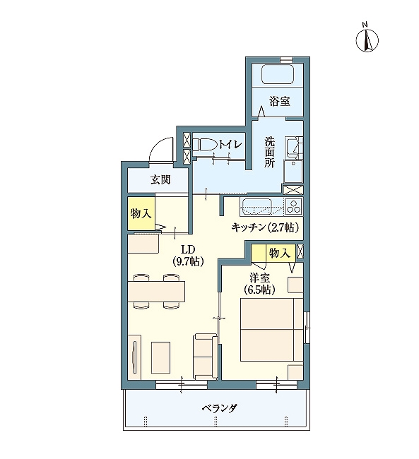 | 居室設備 | キッチン(IHヒーター付)・エアコン・洗面化粧台・洗浄暖房便座付トイレ・緊急通報装置・コート掛け・玄関収納・収納・浴室(浴室乾燥暖房機能付)・自動火災報知機・洗濯機置き場・ベランダ物干しフック・室内物干しフック・録画機能付テレビドアホン |