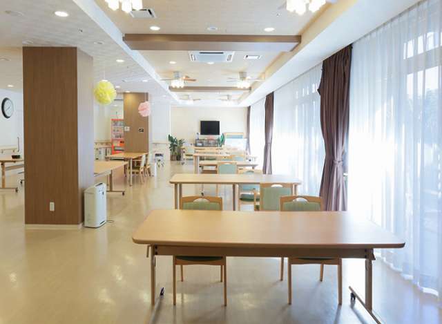 | 共有設備 | 大食堂、特浴室、個浴、洗濯室、喫煙室、冷暖房完備、機能訓練室、面談室、談話室、水洗トイレ、多目的室、エレベーター、洗面脱衣室、緊急通報システム、健康管理室、駐車場、スプリンクラー |