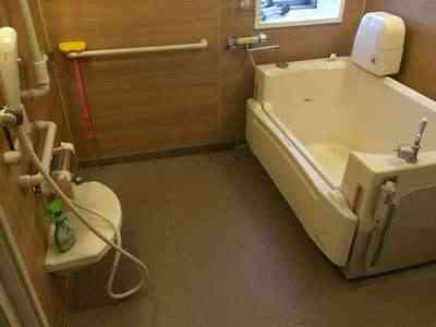 | 居室設備 | フラットフロア、引き戸式ドア(玄関)、フローリング、温水洗浄機能付きトイレ、車椅子対応トイレ、鏡、化粧洗面台、電動介護ベッド、クローゼット、照明器具、防火カーテン、ナースコール、エアコン、地上波アンテナ、椅子、テレビ、冷蔵庫、三段チェスト |