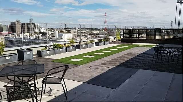 24時間通報システムも設置しており、緊急時も素早くサポート。介護が必要な人は隣接する訪問介護、訪問看護、デイサービスが利用可能。建物には3種類の免震装置を採用し、災害にも強い。