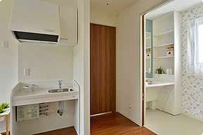 | 居室設備 | 介護ベッド、寝具一式、カーテン、エアコン、緊急通報装置、テレビ端回線、電話端回線、照明器具、車椅子対応洗面化粧台、クローゼット、トイレ、床暖房 |