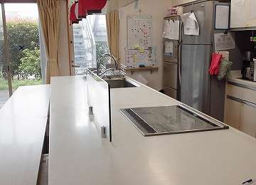 広いリビングでは充分にくつろぐことができ、キッチンカウンターは大きく設計されているため、皆様でお食事作りを楽しむことができます。