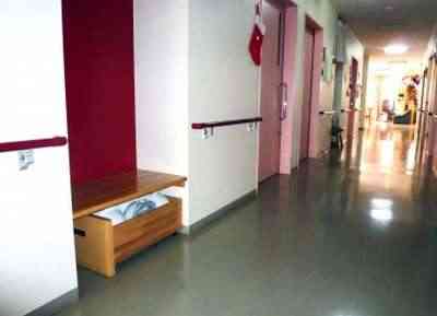 共用部:廊下と階段には手すりを設置し、廊下にはベンチを設置しています。また広いリビングには大きな窓があるので、さまざまなアクティビティやイベントを明るい陽射しの中で楽しんでいただけます。