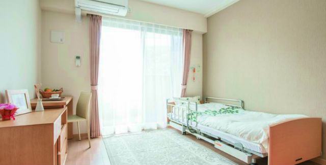 | 居室設備 | 想い出ボックス、フローリング(一部クッションフロア)、車いす対応洗面化粧台(シャンプー水栓付)、電気式温水器、洗濯防水パン(D・Eタイプ)、トイレ(温水洗浄付、暖房便座機能付)、洗面・トイレ照明(人感センサー付)、手すり(トイレ)、ミニキッチン(D・Eタイプ)、クローゼット、床暖房(電気式)、電動式介護ベッド、寝具、居室照明(リモコン付)、ケア・ナースコール、冷暖房エアコン、スプリンクラー、非常放送設備、防炎カーテン、カーテンレール、カーテンボックス |