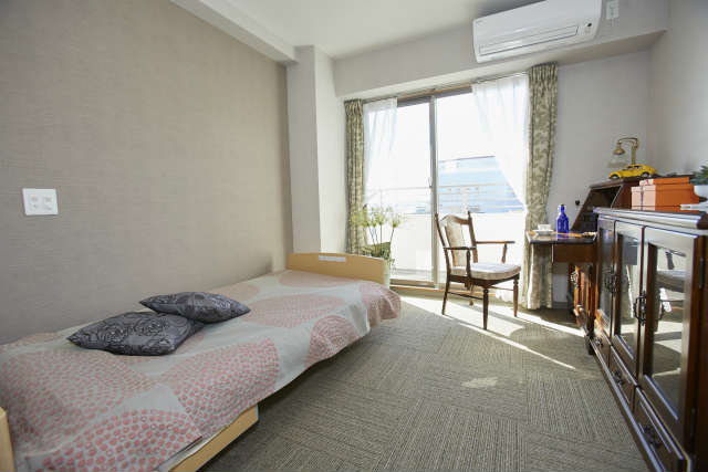 | 居室設備 | 介護ベット、レースカーテン、ナースコール、トイレ、洗面、エアコン、電話回線、地デジテレビ回線、ミニキッチン(2人部屋)、ワードロープ(2人部屋) |