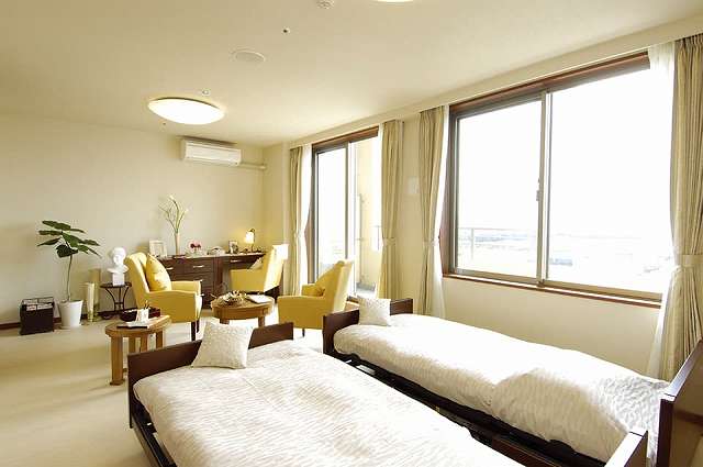 | 居室設備 | 主な設備:トイレ、洗面化粧台、ベッド、エアコン、二人室にはユニットバスとミニキッチン |