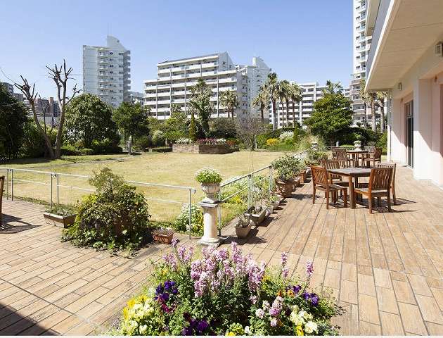 施設内の中庭は、綺麗に選定された草花が可愛らしく生けられており、ベンチに座って日向ぼっこするのにもとても良さそうな気持ちの良い空間でした。