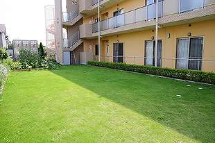 | 共有設備 | 地域交流スペース、食堂、浴室(個浴、足湯、岩盤浴、機械浴)洗濯室、機能訓練室(アクティビティルーム)、談話室、健康管理室、ゲストルーム兼相談室、理美容室、多目的室、プライベートダイニング、厨房、リネン室、ルーフバルコニー、家庭菜園、グランドゴルフ、駐車場 ・避難用スベリ台、ケアコール、エレベーター2基(11人、3人)、グループホーム専用エレベーター1基(9人)、スプリンクラー、火災報知設備、誘導灯、防排煙設備、非常放送設備 |