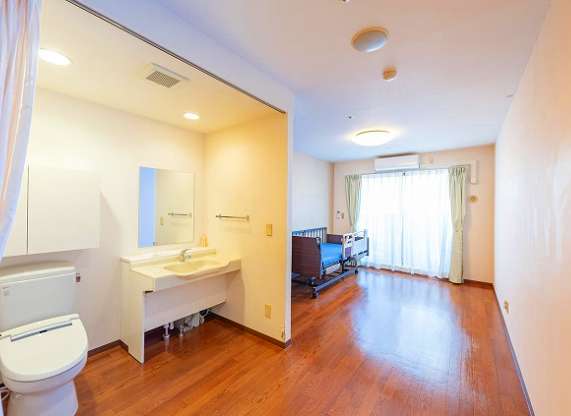 | 居室設備 | エアコン、洗面所、物入れ、ウオッシュレットトイレ、ナースコール、スプリンクラー、介護ベッド |