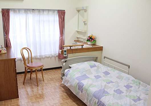 | 居室設備 | 介護ベッド、車いす対応トイレ、緊急通報装置、洗面器、チェスト、空調機 |