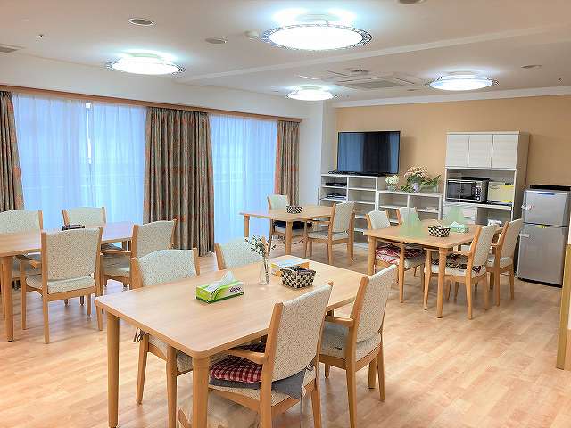 | 共有設備 | エントランス・多目的ホール・談話コーナー・事務室・食堂・(機能訓練室兼用)2ヶ所、浴室3ヶ所(脱衣所含む)・洗濯室・健康管理室・エレベーター |