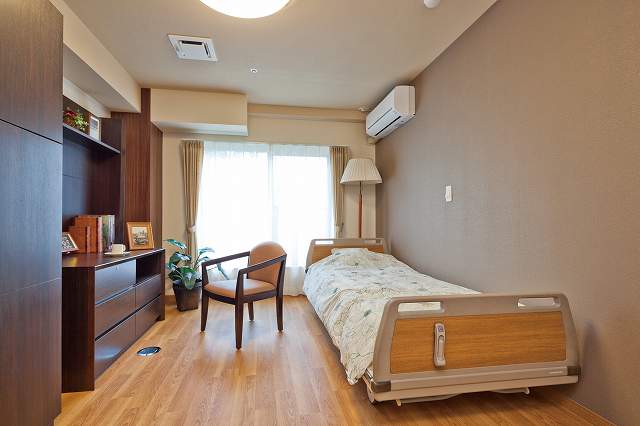 | 居室設備 | 介護ベッド、洋服タンス、整理戸棚、床頭台、エアコン、カーテン、TV端子、電話ジャック(一部)・ |
