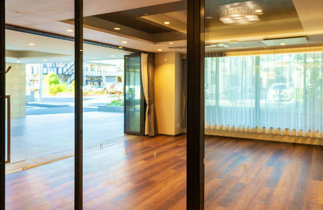 SOMPOケア ラヴィーレ元住吉は、せせらぎ川の向かいに面し、明るく開放的なエントランスからは陽の光や季節ごとの花々を眺め、遊歩道を歩く人々の流れと共にゆったりとお過ごしいただける空間となっております。