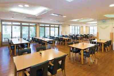 | 共有設備 | エントランスロビー、 ダイニング(3)、応接室、クラブルーム、ナースルーム、ケアステーション、理美容室、事務室、浴室(8)、ランドリールーム、機能訓練コーナー、ラウンジ(7)、中庭、和室、トイレ |