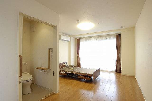 | 居室設備 | ナースコール、冷暖房完備、ウォシュレット設置、介護用電動ベッド(寝具付) |