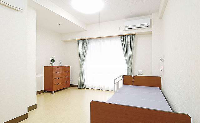| 居室設備 | エアコン・カーテン・介護ベット・寝具・ナースコール・トイレ(ウォシュレット)・照明・洗面台・スプリンクラー |