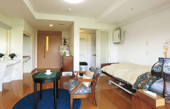 | 居室設備 | ミニキッチン、玄関引き戸扉、床暖房、フローリング、フラットフロア、ナースコール、空調換気設備、照明器具、エアコン、空気清浄器、電動介護ベッド、カーテン、寝具一式、温水洗浄機能付きトイレ、洗面化粧台、シャワー |