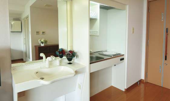 | 共有設備 | エントランスホール、風除室、フロント、ロビー、リビングルーム、ダイニングルーム、中庭、遊歩道、駐車場、バイク置き場、駐輪場、応接室、エレベーター、寝台用エレベーター、食堂、一般浴室、共用トイレ、車椅子用トイレ、洗面室、更衣室、健康管理・相談室、機械浴室、理美容室、厨房室、リネン室、汚物処理室、放送設備、防災設備、避難設備、脱臭設備 |