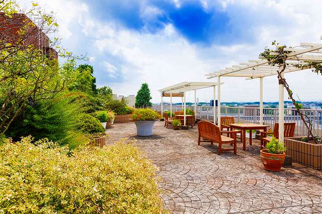 入口を入ると、5階までの吹き抜けが心地よい、「ヒルデモアたまプラーザ」。明るさと開放感に包まれるとともに、毎日の暮らしの場としての環境が整っています。・一般浴室は、体調や生活スタイルにあわせてご利用いただけます。介助浴室も備え、イスに座ったままや寝たままの姿勢でもご利用可能。おひとりで入浴されたい方のための小浴室もございます。・晴れた日には富士山頂がのぞめる屋上では、普段は見晴らしの良い散歩コースとして、また夏祭りには屋台が並ぶなど、ご入居者の交流の場として親しまれています。・お部屋はすべて個室をご用意。プライベートを守るとともに、ナースコールや防災設備などの各種設備で安全面にも万全を期しています。さまざまな人生の思い出とともに、ゆったりとお過ごしください。